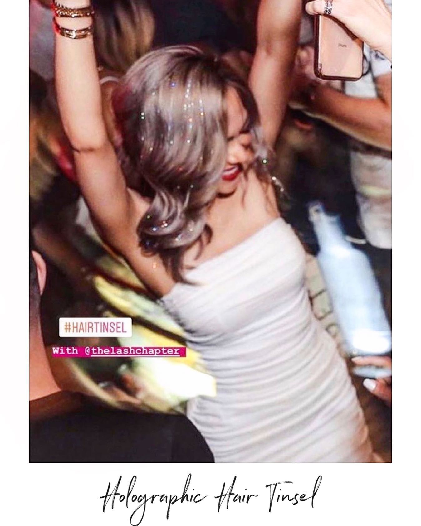 Wearing hair tinsel extensions are a fun addition to your normal hair look – they’re a playful way to add color and glitter to your hair without the commitment! so if you’re wanting to achieve a subtle look then add just a few tinsel extensions with us !