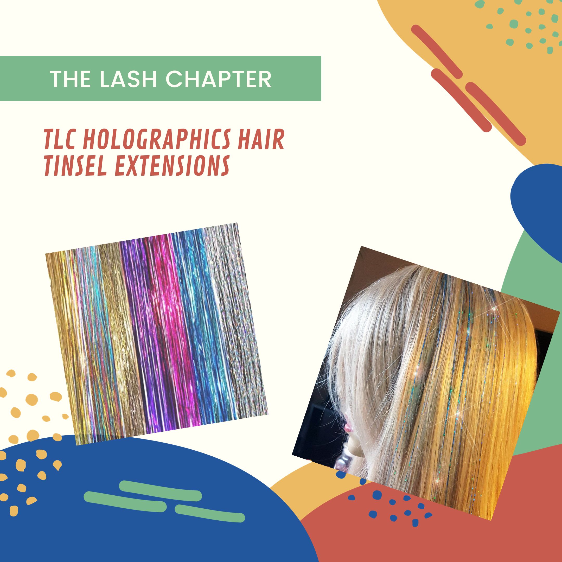 TLC Holographic Hair tinsels a is an individual, colorful strands of sparkling silk strand that creates a dazzling look to any hair style, length, or texture and can be worn every day or customized in your hair for any special occasion.